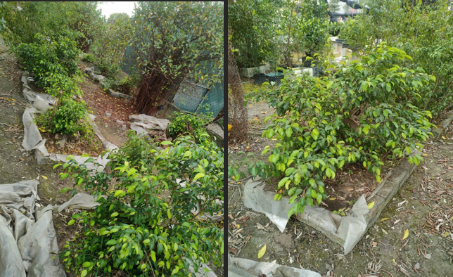 Hình: Vườn giống cây Trà hoa vàng ươm từ hạt (bên trái) và từ ghép cây (bên phải)