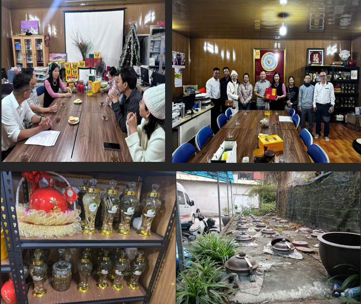 Tại xưởng sản xuất của chị, đoàn được cùng trao đổi, nghe chị giới thiệu và được thưởng thức các sản phẩm từ Sâm Nhất Dương (rượu ngâm), cây Nhất huyết mộc (bột tỉ muội, trà túi lọc), Trà Bông vàng (hoa tươi hoặc nụ hoa sấy thăng hoa) rất giàu dược chất và có nhiều lợi ích cho sức khỏe.