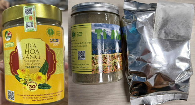 Hình: Nụ sấy thăng hoa Trà bông vàng (bên trái), và bột tỉ muội, trà túi lọc từ cây Nhất huyết mộc