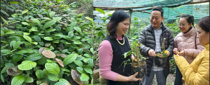 Tại vùng núi vườn trồng cây dược liệu ở Thái Nguyên, đoàn còn được tham quan một số loại cây có giá trị khác như cây Nhất huyết mộc che tán, trà hoa vàng sinh trưởng ở tầng giữa, dược liệu quý sống ở tầng đáy tạo nên một hệ sinh thái đa tầng sinh học dược liệu dưới tán rừng.