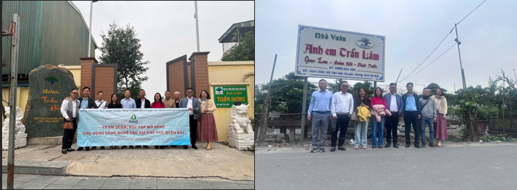 Hình: Đoàn công tác tại nhà vườn Tuấn Hưng và nhà vườn Anh em Trần Lâm